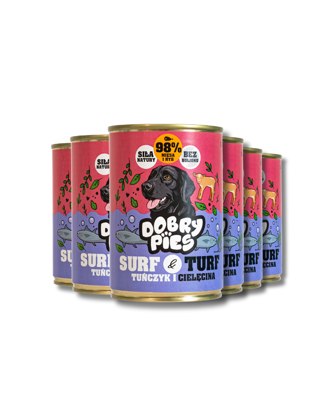Połączenie cielęciny (68,5%) i tuńczyka (30%) tworzy delikatną, mięsno-rybną bazę o łagodnym smaku. Subtelny akcent mięty przyjemnie odświeża aromat i urozmaica codzienny posiłek. To pełnoporcjowa, lekkostrawna karma dla dorosłych psów wszystkich ras — prosta receptura, którą łatwo polubić.